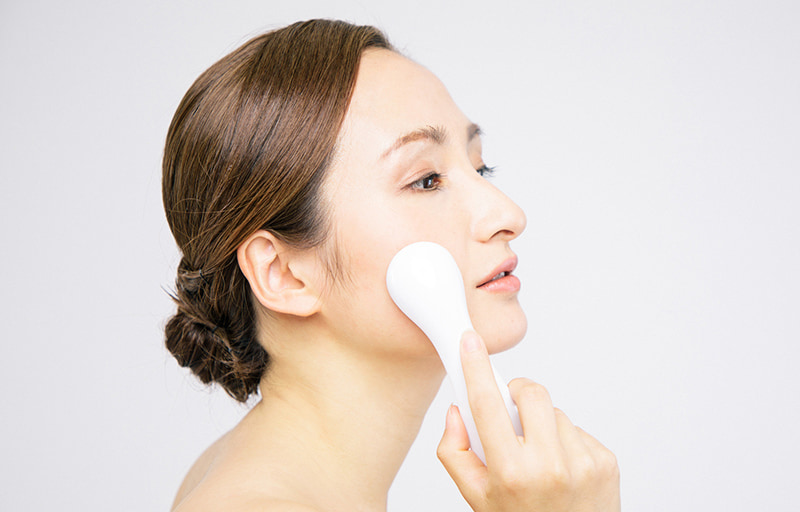 EMS(電気刺激):表情筋に微弱な電流を流して刺激し、筋力アップとリフトアップ効果が期待できる。 RF(ラジオ波):肌の奥深くまで温めてコラーゲン生成を促し、ハリと弾力を与える。